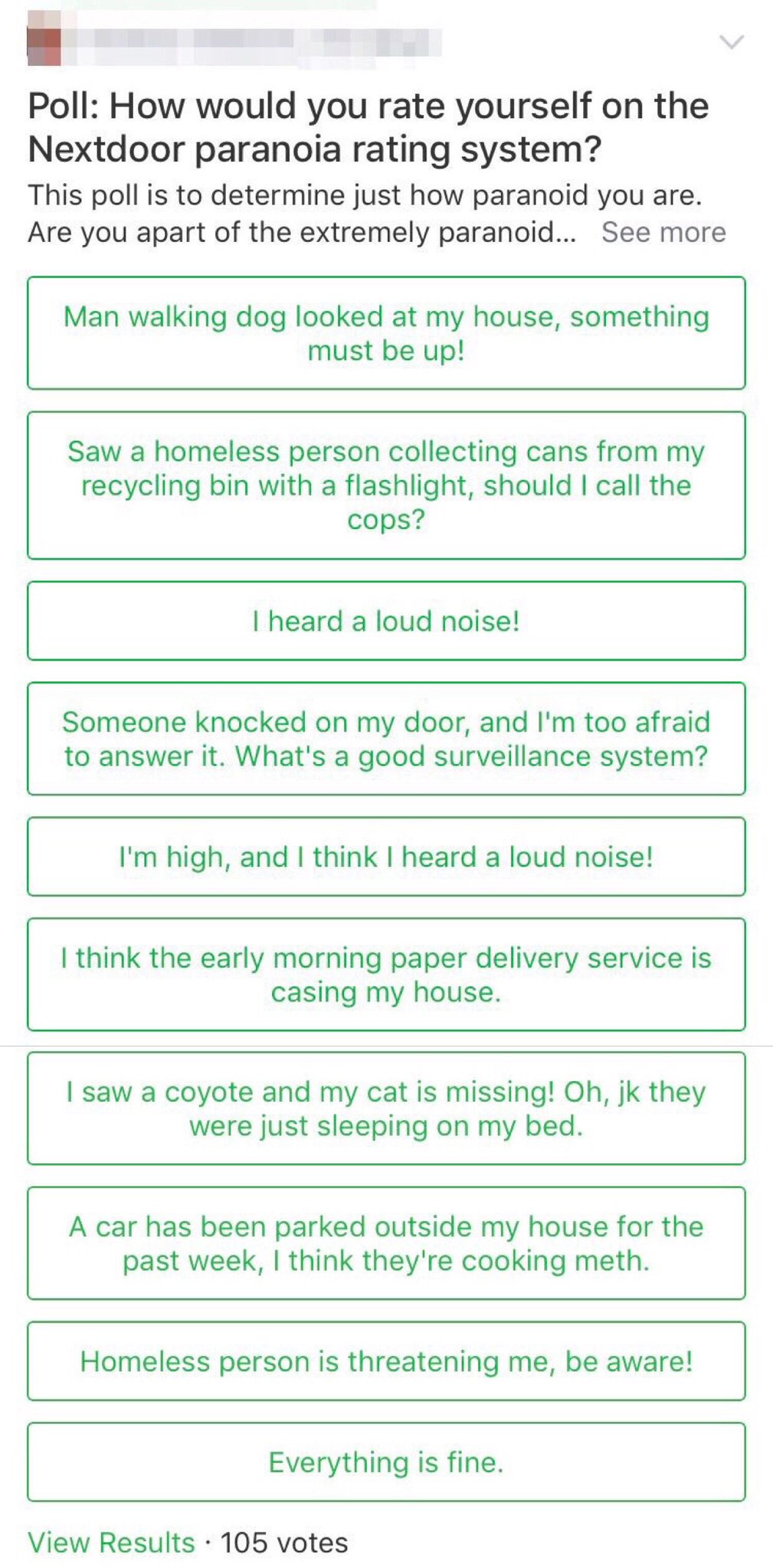 Best Of Nextdoor On Twitter What S Your Nextdoor Paranoia Rating Https T Co 4zjb3r4tpl Twitter